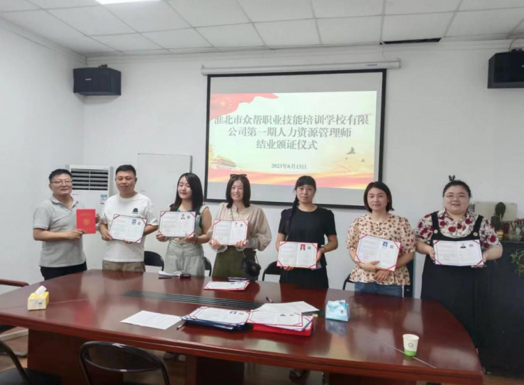 2023年6月13日,勞代公司淮北市眾幫職業(yè)技能培訓(xùn)學(xué)校為第一期38名學(xué)員頒發(fā)了企業(yè)人力資源管理師證書,通過率達(dá)99%。我校利用周末時(shí)間以線上+線下結(jié)合的教學(xué)模式開展企業(yè)人力資源管理師培訓(xùn),培訓(xùn)教師通過舉實(shí)例、現(xiàn)場(chǎng)提問、模擬現(xiàn)實(shí)場(chǎng)景的方法,宣講了從事企業(yè)人力資源管理工作的方法和經(jīng)驗(yàn),進(jìn)一步提升了培訓(xùn)學(xué)員的工作能力,規(guī)范了學(xué)員在從事企業(yè)人力資源管理工作中的操作方法和工作流程。形成“培訓(xùn)—技能提高—企業(yè)發(fā)展—再培訓(xùn)”的發(fā)展模式,讓學(xué)員真正做到學(xué)以致用。
