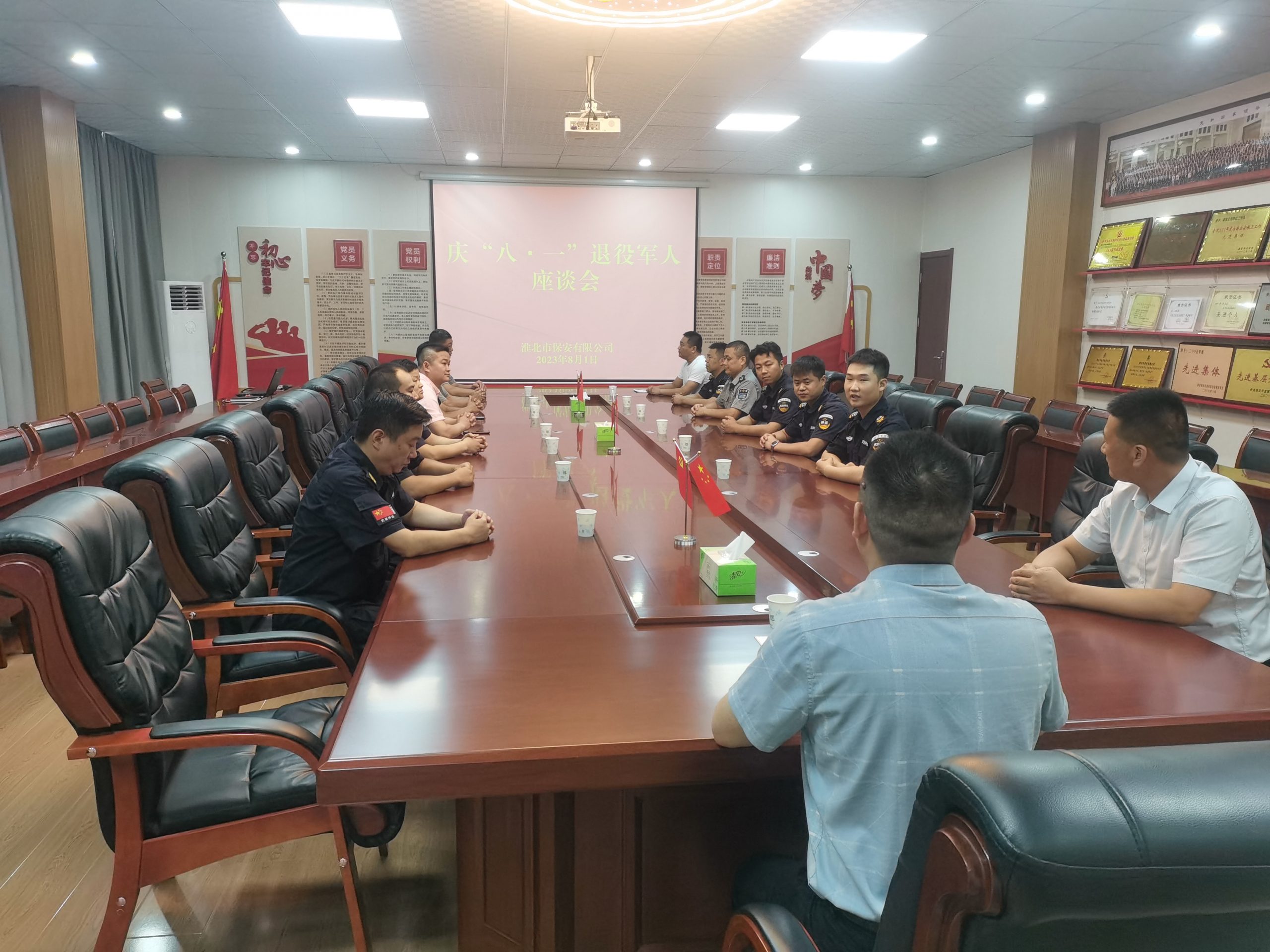 在慶祝中國人民解放軍建軍96周年之際,為弘揚保安公司擁軍優(yōu)屬的光榮傳統(tǒng)。8月1日上午,淮北市保安有限公司開展慶“八一”退役軍人座談會。