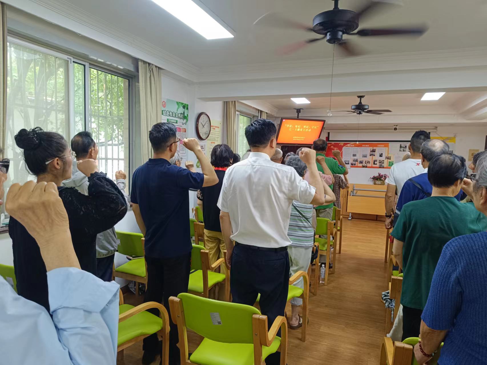 2024年6月27日上午,東盛(上海)融資租賃有限公司黨支部同淮北市駐滬聯(lián)絡(luò)處黨支部參加上海靜安區(qū)大寧延峰居民區(qū)黨總支開展的黨日活動。一是黨紀(jì)學(xué)習(xí)教育(支部書記講黨課);二是舉行光榮在黨50年紀(jì)念章頒發(fā)儀式;三是黨員集體宣誓;四是黨紀(jì)知識競答;五是播放廉政廉潔教育宣傳片。為活躍氣氛,活動中不時有黨員自編自演的樂器演奏和舞蹈歌唱表演。本社區(qū)民警姜警官還進(jìn)行了用電用火安全教育及防電詐宣傳。
